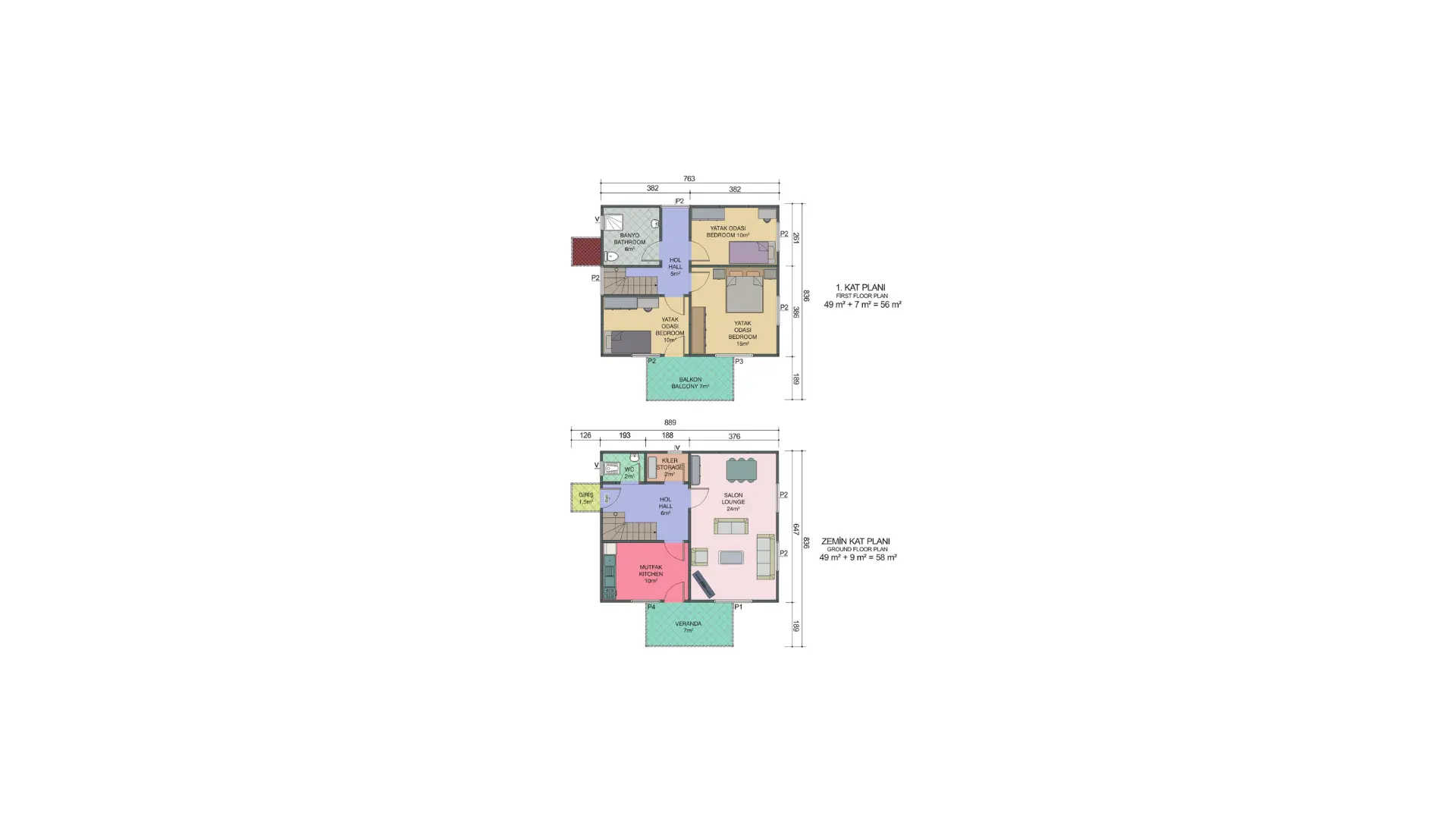 Çift Katlı Prefabrik Ev (114m²) Planı